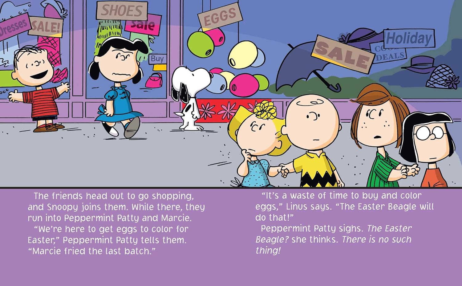 There are many products generated as Peanuts “collectibles”. There have even been some special editions of books that would qualify, such as those leatherbound Easton Press editions. Still, I think the upcoming board book edition of It’s the Easter Beagle, Charlie Brown is pushing the line a bit. The publisher (Little Simon) is promoting the fact that the first printing, and only the first printing, will have “gilded edges”.